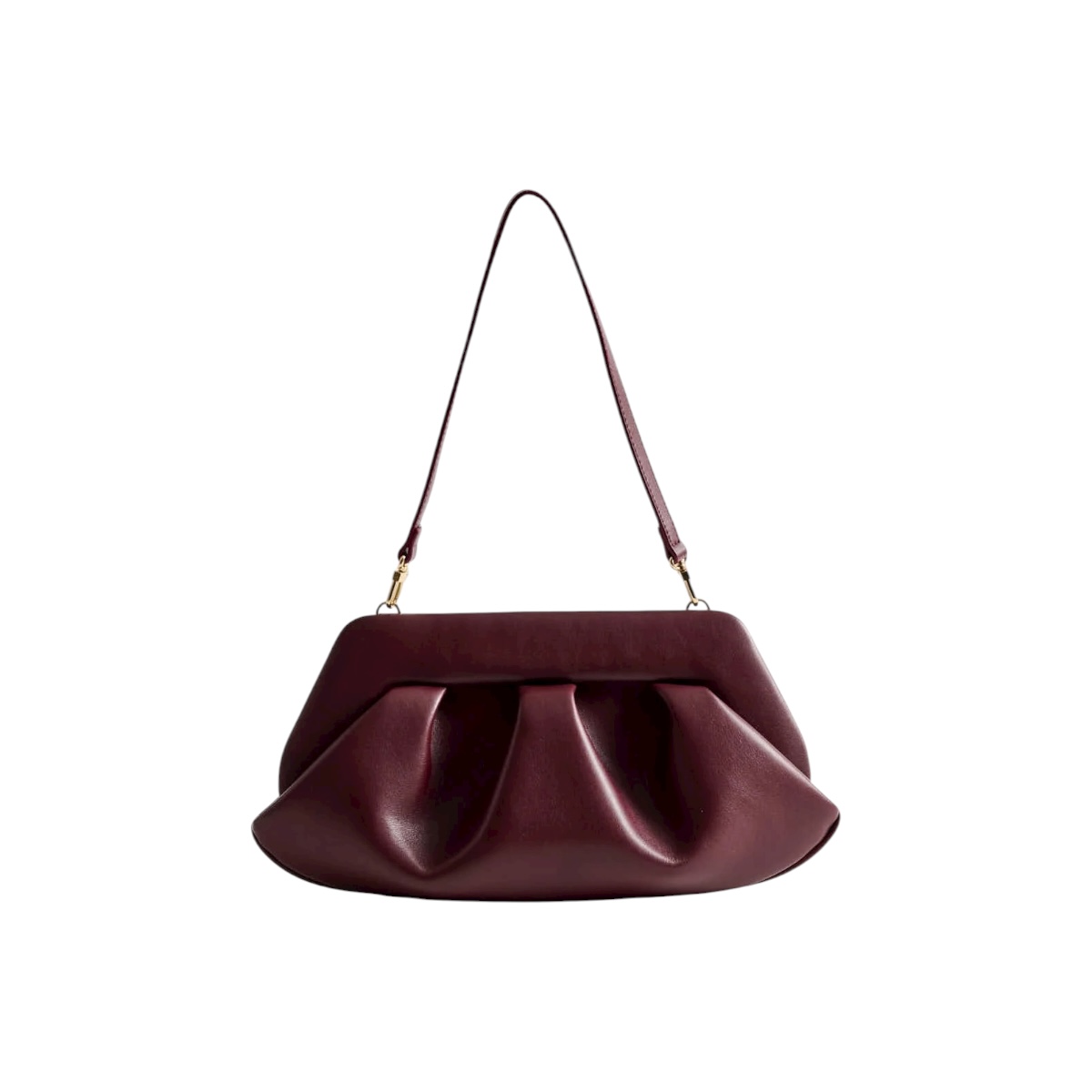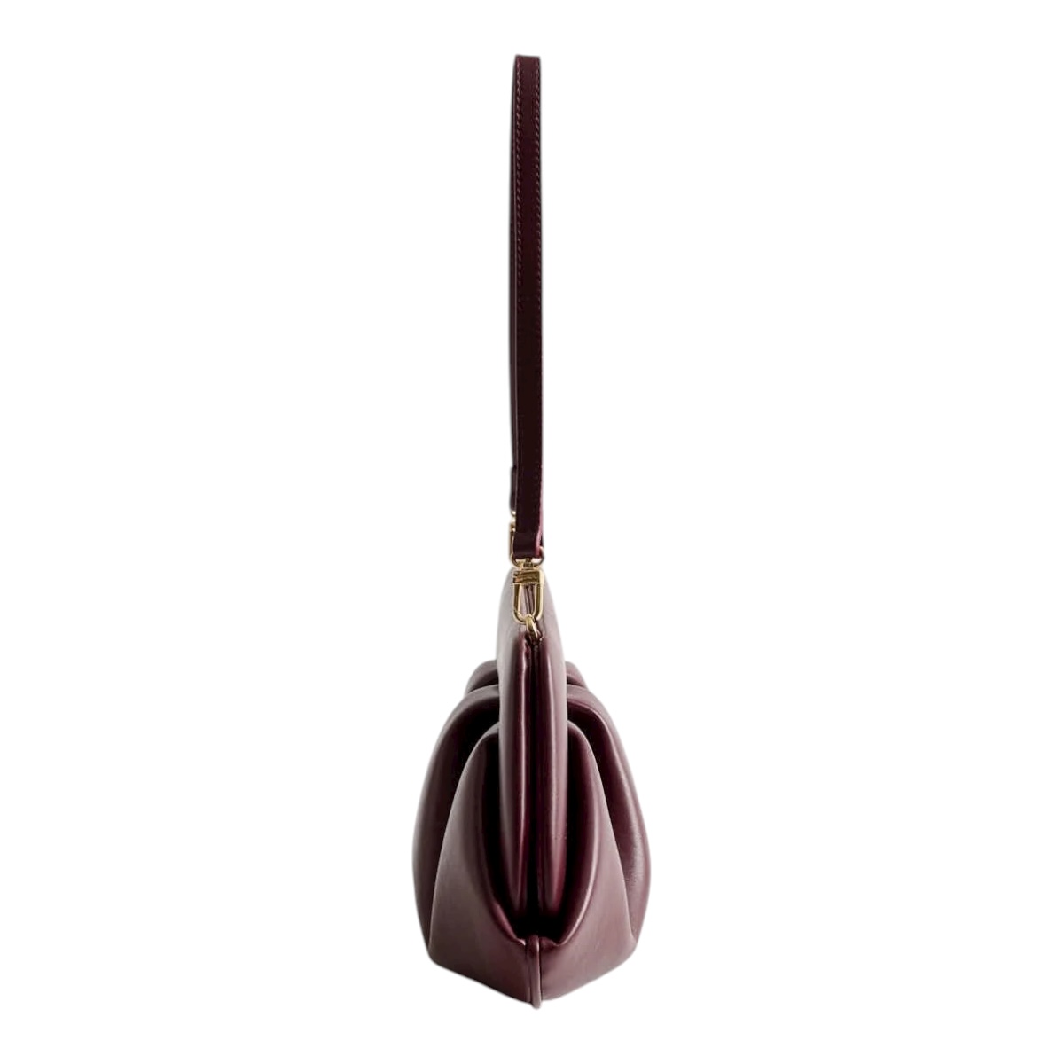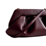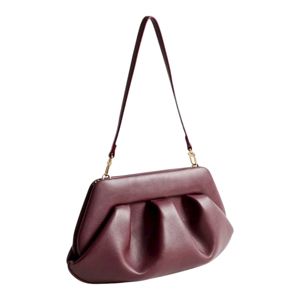 Borsa modello clutch con tracolla a braccio in colore prugna di pelle vegana.
