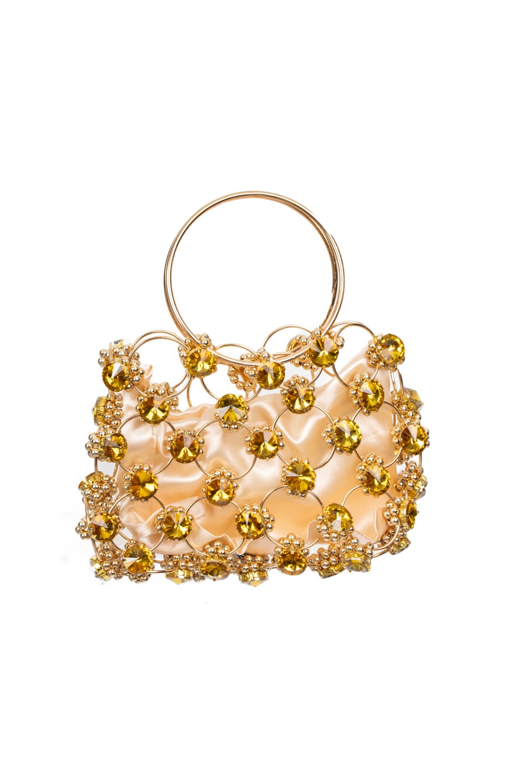 Borsa gioiello da donna dal design elegante e scenografico, pensata per illuminare il look con un accessorio prezioso, femminile e di forte impatto visivo. Il modello si distingue per la raffinata struttura in metallo dorato arricchita da luminosi cristalli applicati, che creano un effetto brillante e sofisticato. Il pratico manico ad anello aggiunge un dettaglio contemporaneo e ricercato, mentre il morbido interno in tessuto dona equilibrio tra struttura e leggerezza. Compatta ma estremamente decorativa, questa borsa elegante da sera è ideale per completare outfit da cerimonia, party, ricevimenti, eventi speciali e look glamour da occasione. Un accessorio statement che unisce gusto bijoux, ricercatezza e femminilità, perfetto per chi desidera distinguersi con dettagli esclusivi.