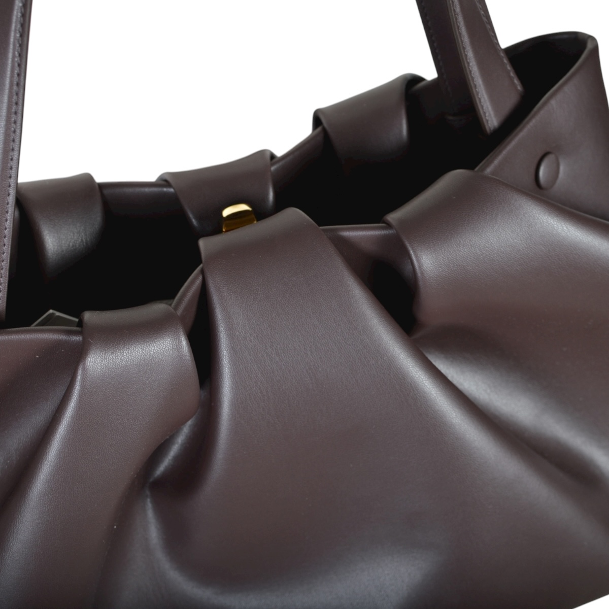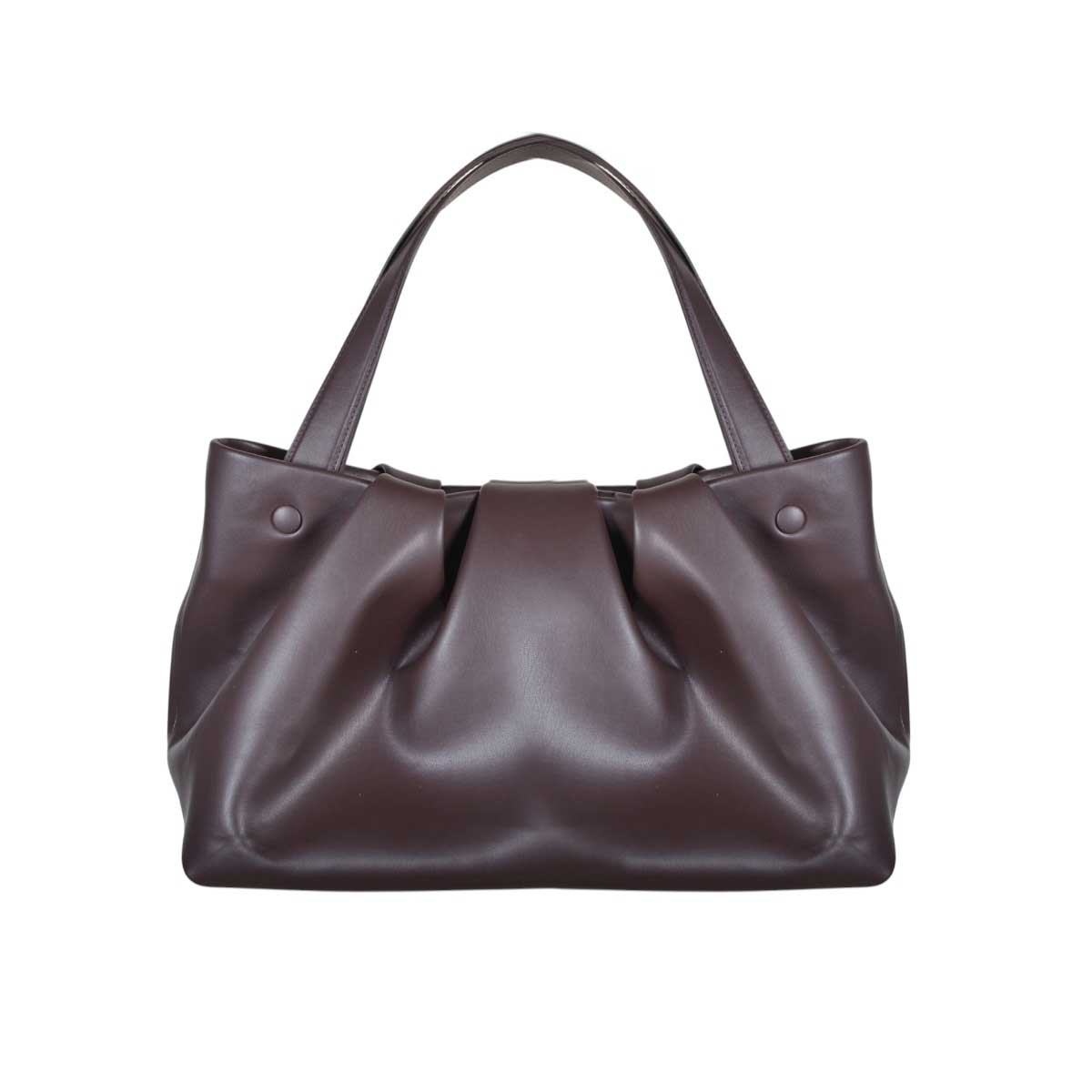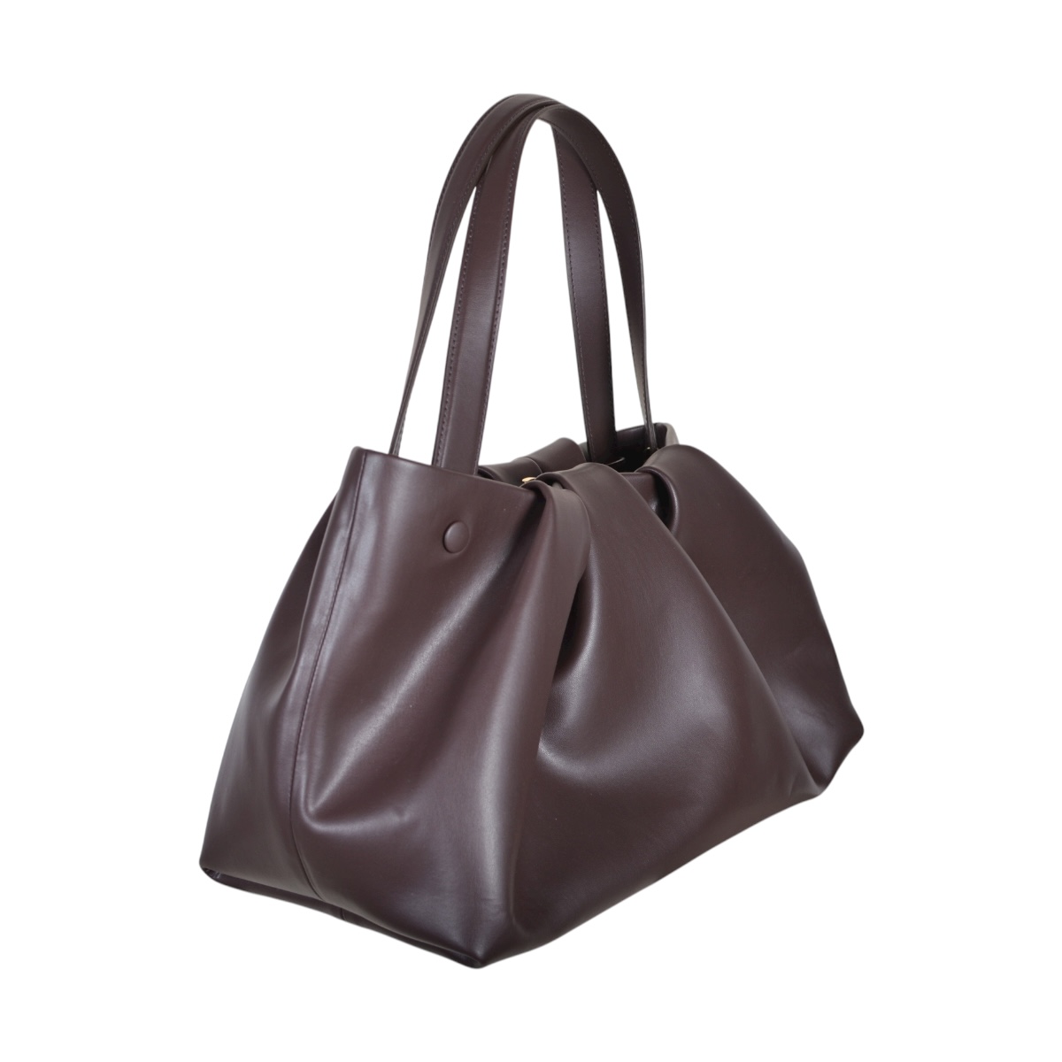 Borsa shopper in pelle vegana color cioccolato ebony con chiusura magnetica.
