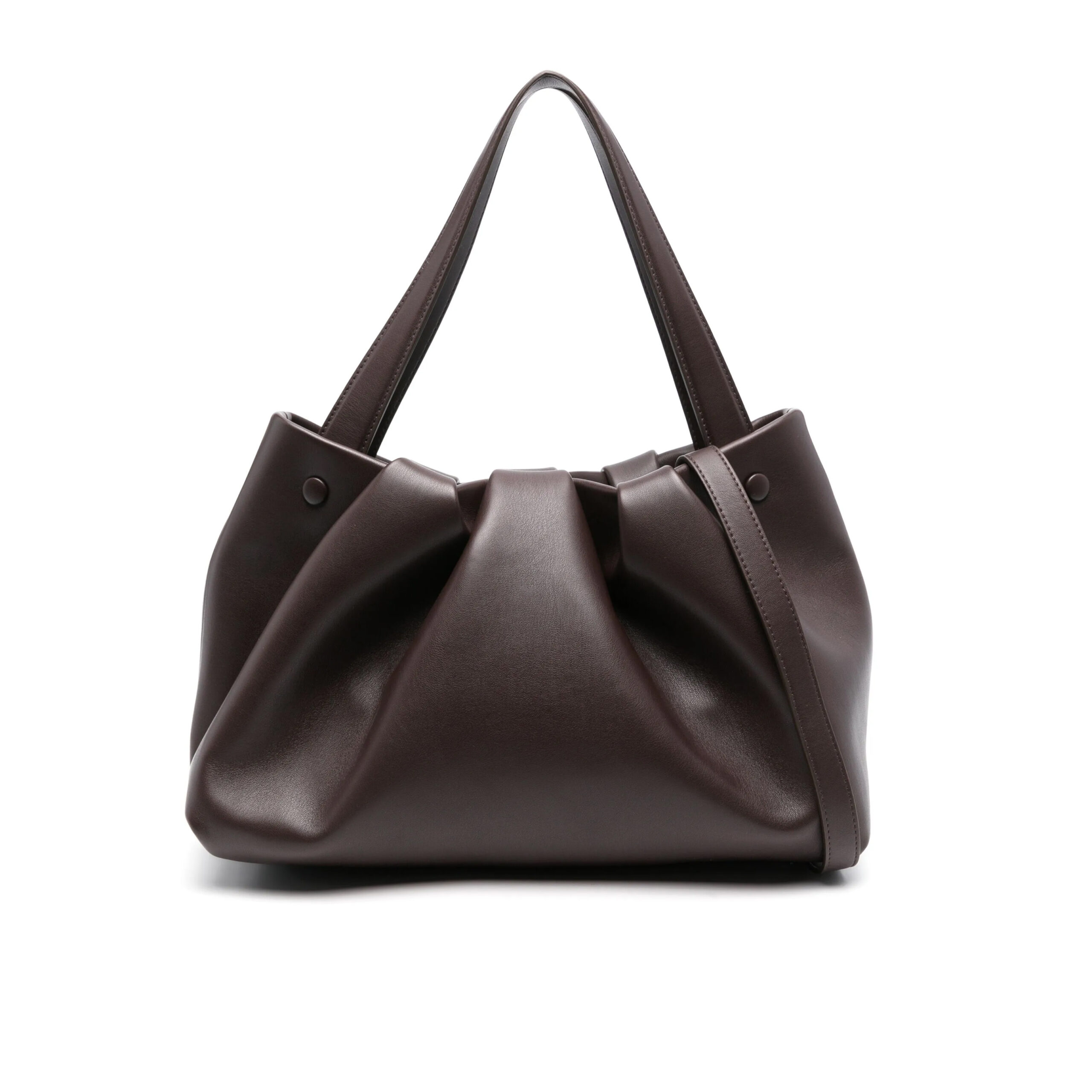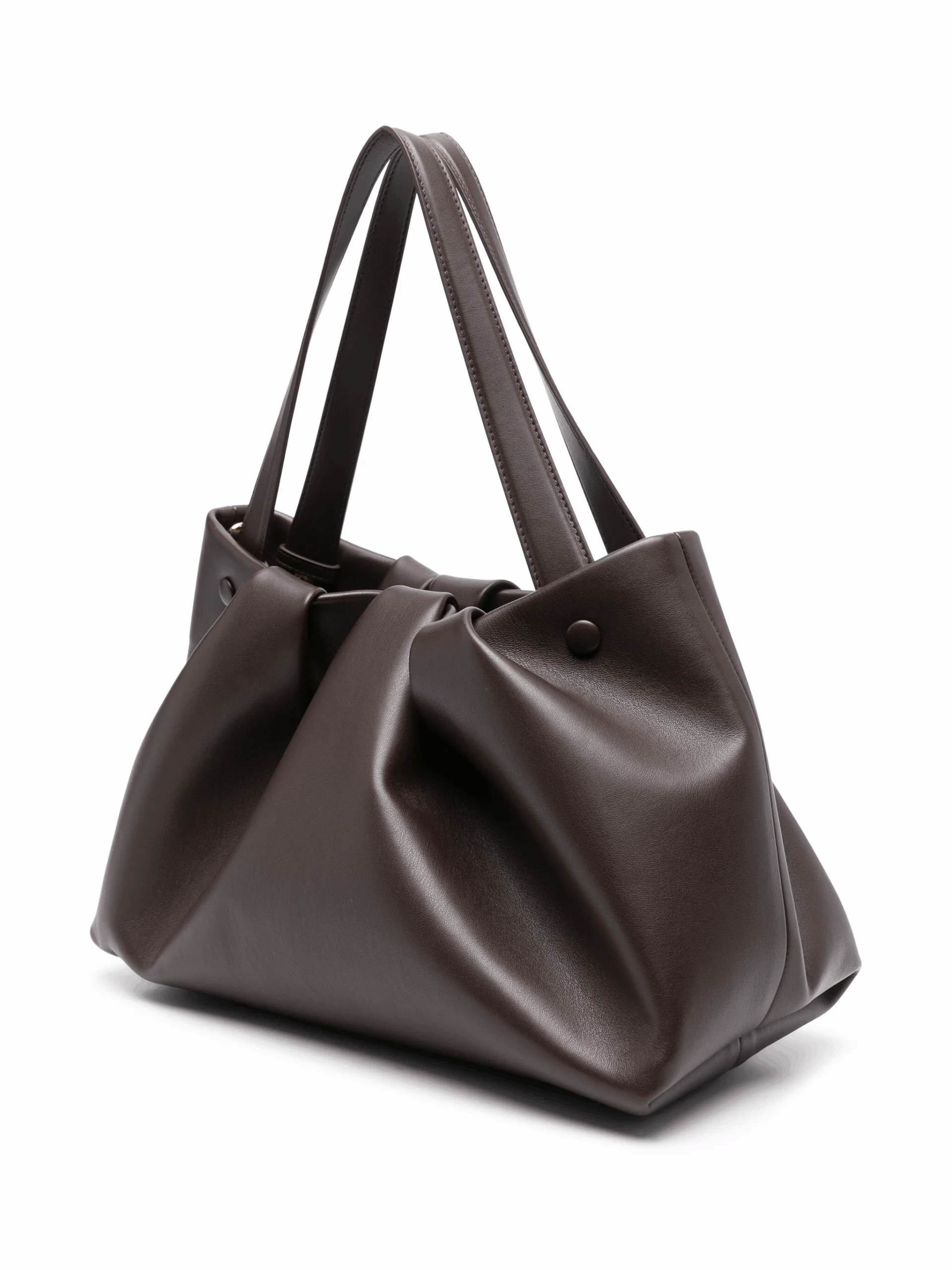 Borsa shopper in pelle vegana color cioccolato ebony con chiusura magnetica.