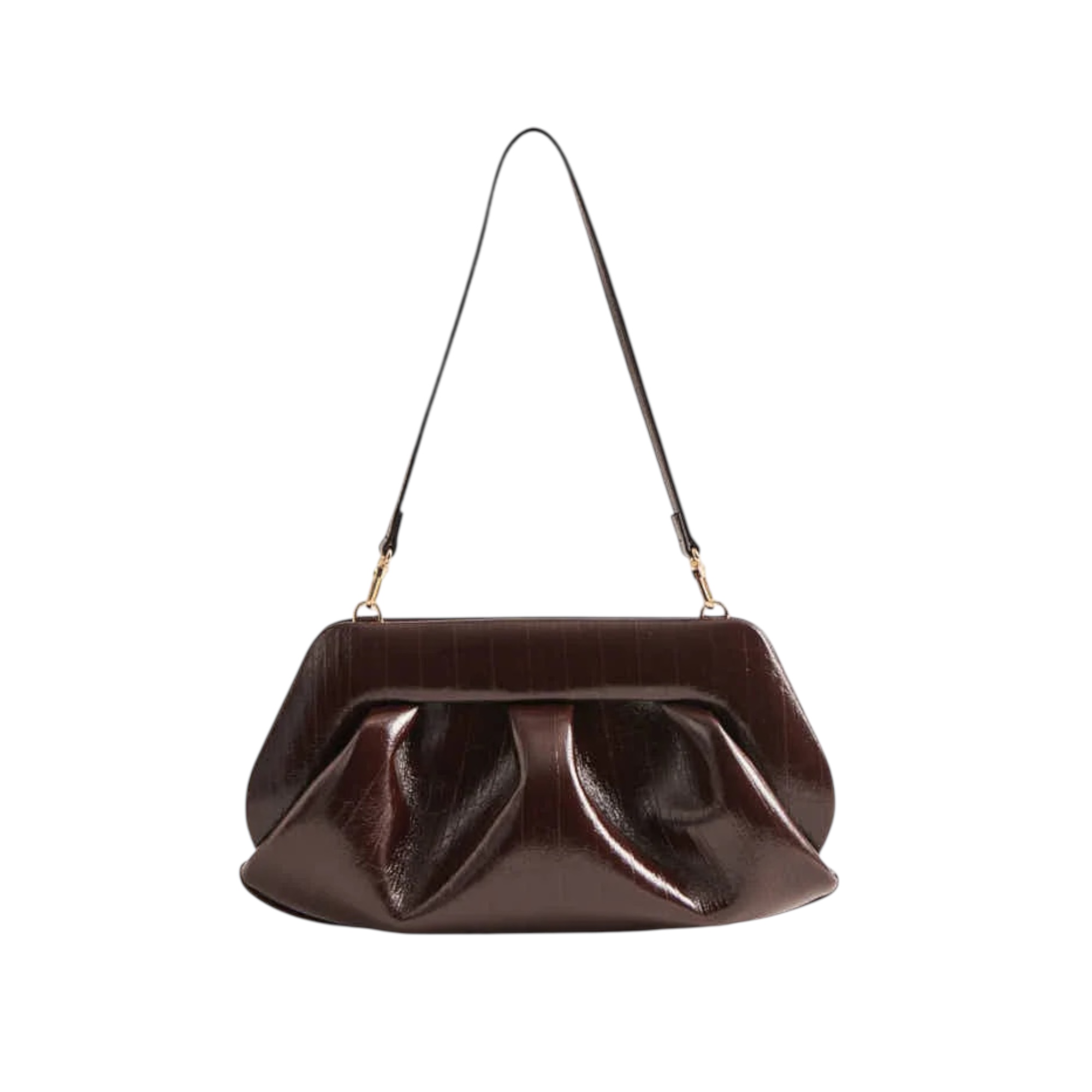 La Bios Baguette in Vegan Fabric rigato Chocolate Plum valorizza la forma scultorea della linea con un materiale vegano dalla texture rigata e un finish elegante. La tonalità Chocolate Plum, ricca e sofisticata, rende la borsa perfetta per look day-to-night. La chiusura magnetica e la costruzione morbida assicurano praticità, mentre la finitura rigata conferisce un tocco moderno e ricercato, ideale per la donna attenta allo stile e alla sostenibilità.