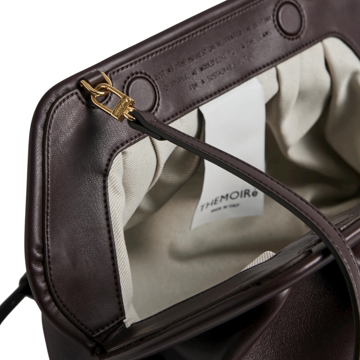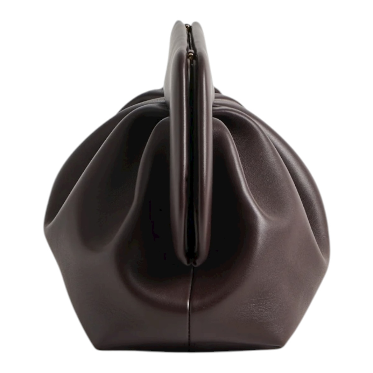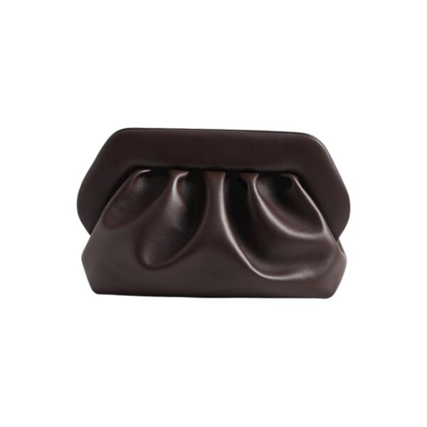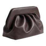 Iconica borsa Bios in pelle vegana modello clutch con calamita in morbida pelle vegana color cioccolato ebony.