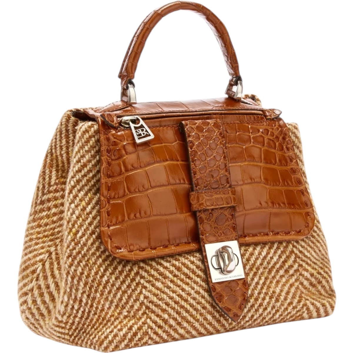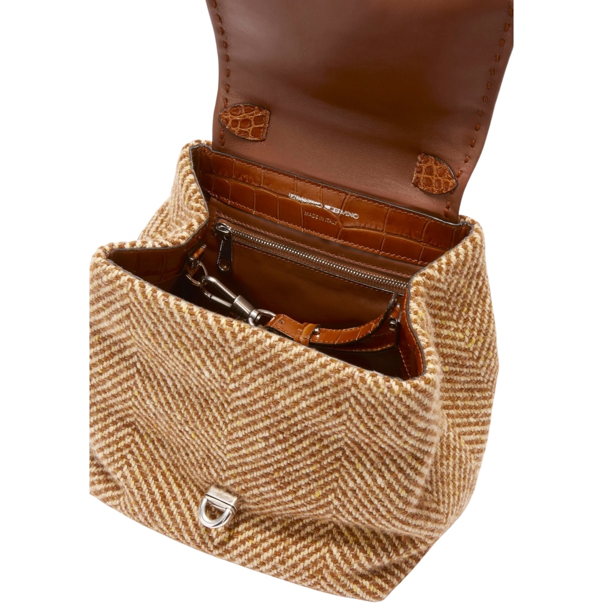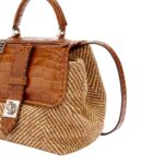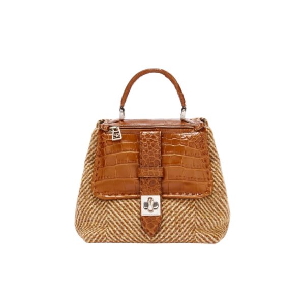 Un accessorio di carattere che fonde il savoir-faire artigianale della Maison con ispirazioni materiche d’archivio. La borsa Liza reinterpreta la classica top handle attraverso l’uso ricercato dei materiali: il tessuto a spiga richiama i tessuti heritage utilizzati nell’abbigliamento, mentre la patta e i dettagli in pelle stampa cocco intagliata regalano una preziosa illusione tattile e visiva, simile al vero coccodrillo. Un design compatto e funzionale, arricchito da elementi distintivi come il girello personalizzato e l’interno foderato in camoscina tono su tono. Si porta a mano o a spalla grazie alla tracolla di servizio, per accompagnare con eleganza ogni momento della giornata.