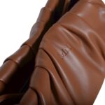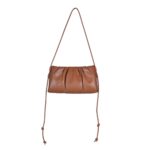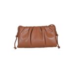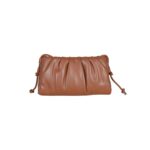 Borsa modello pouch in pelle arricciata con manici estendibili a tracolla color cioccolato.