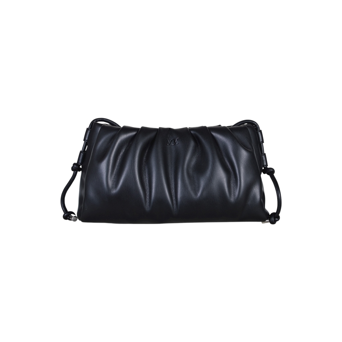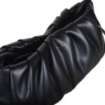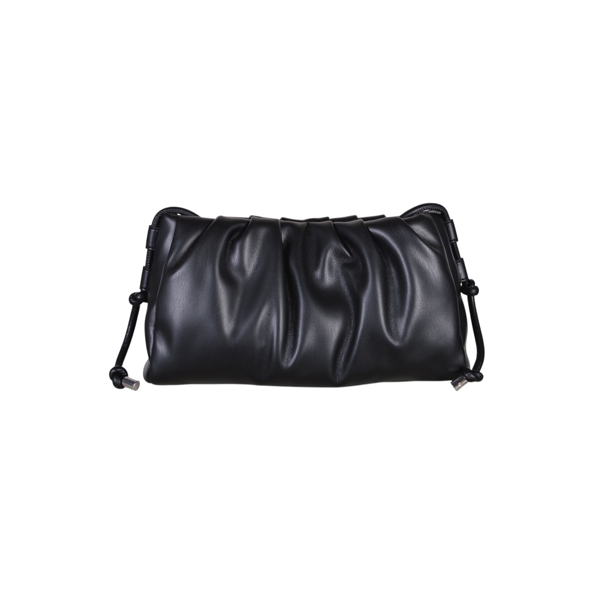 Borsa modello pouch in pelle arricciata con manici estendibili a tracolla color nero.