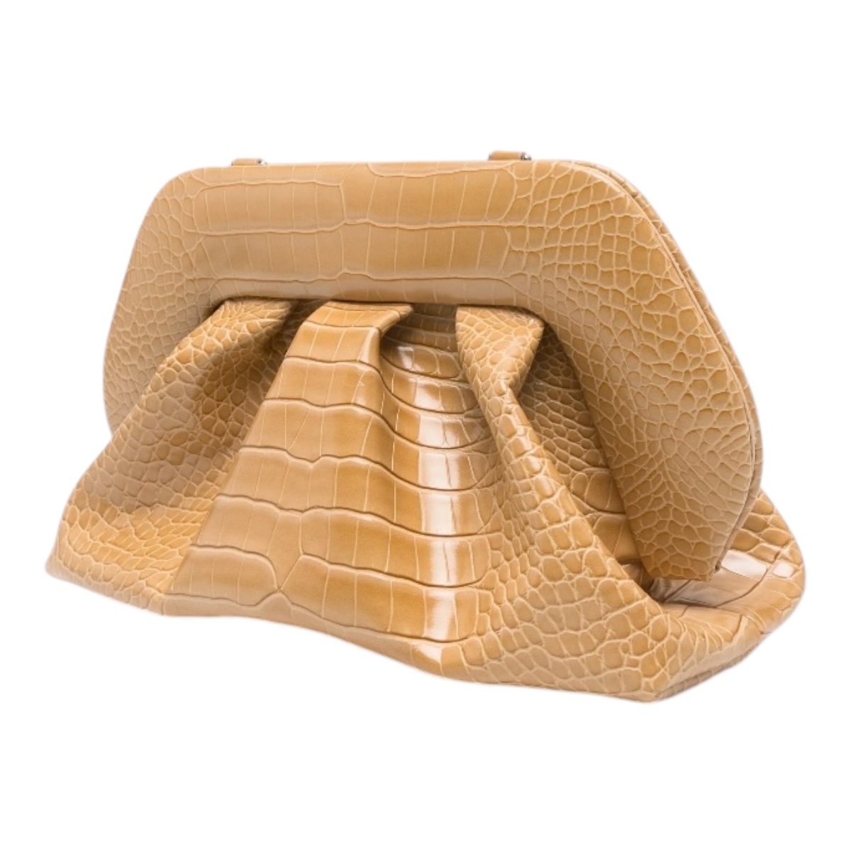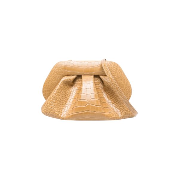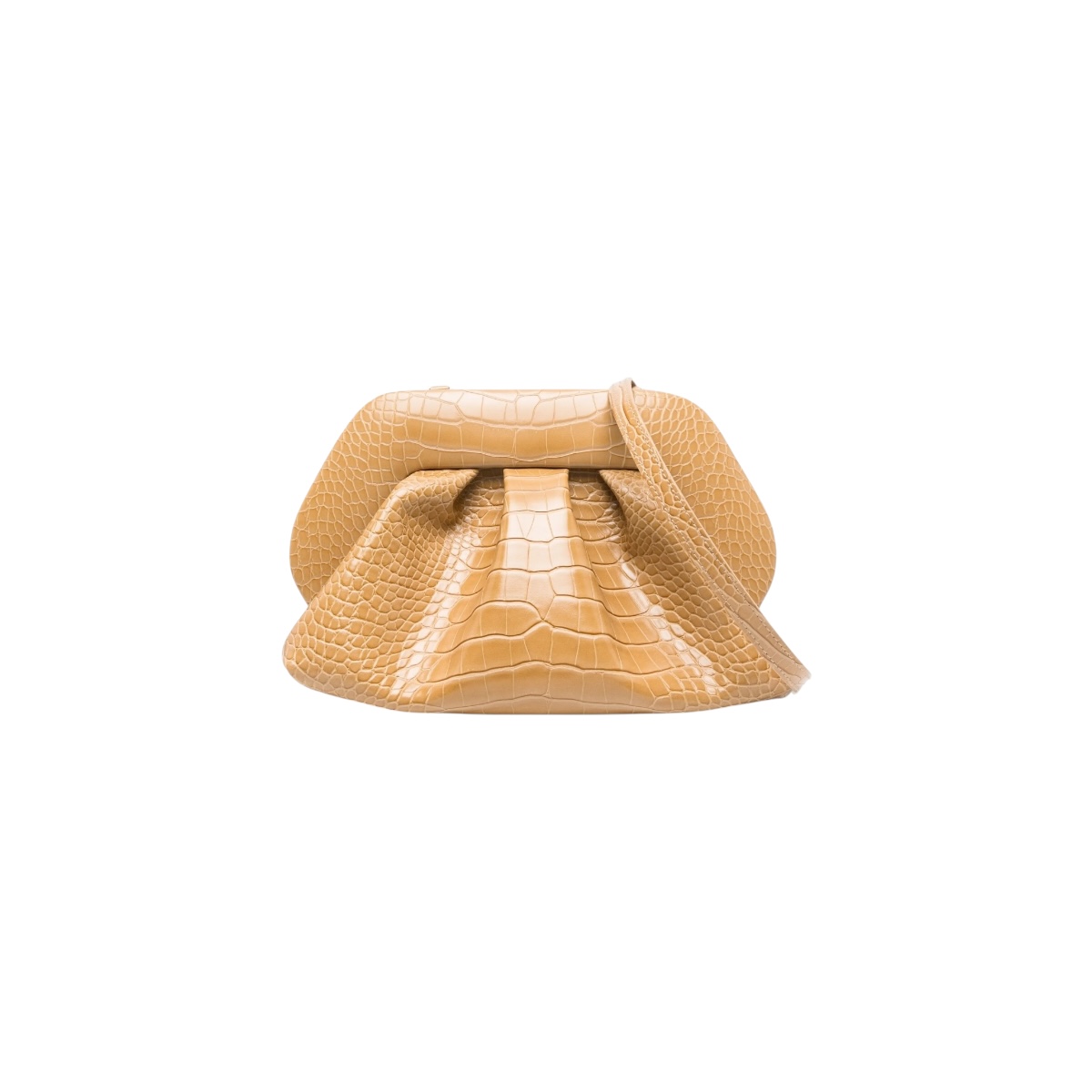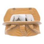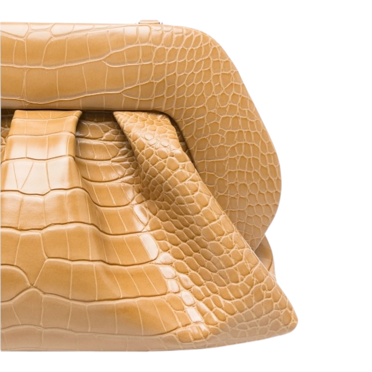 Borsa Tia modello clutch con chiusura a calamite in pelle vegana stampa cocco nel color biscotto.
